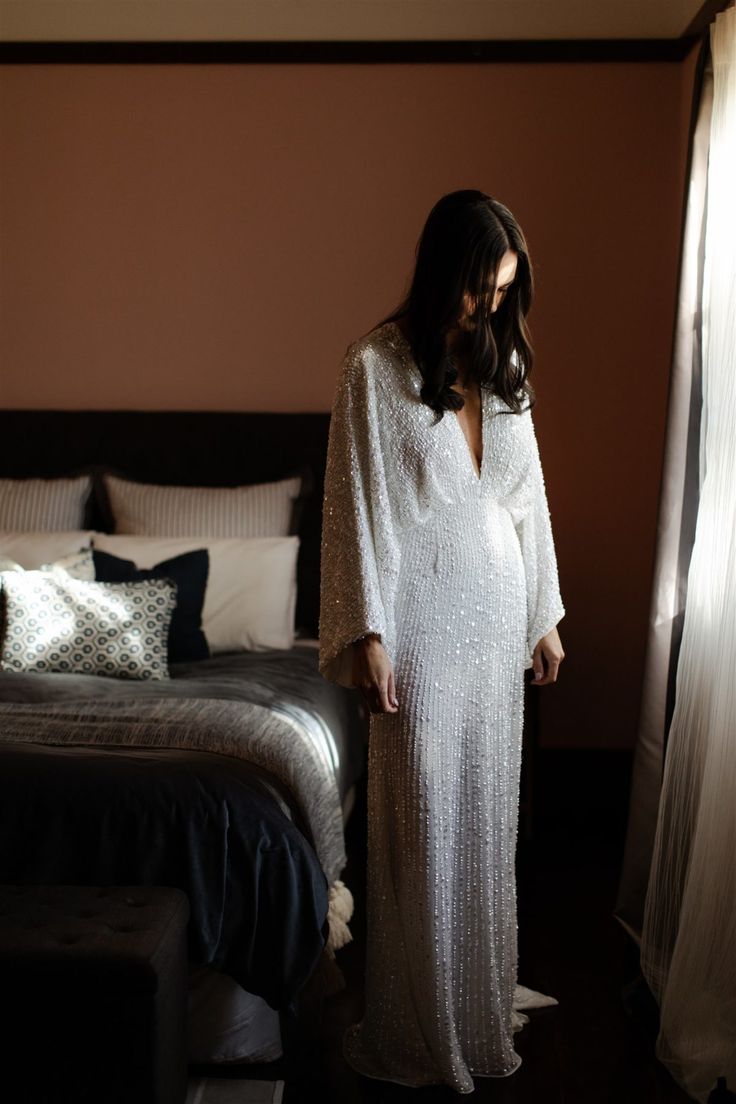 Sexy Sheath Bat Sleeves Wedding Dress, Luxury Sparkle Open Back Bridal Dress Wedding Gown