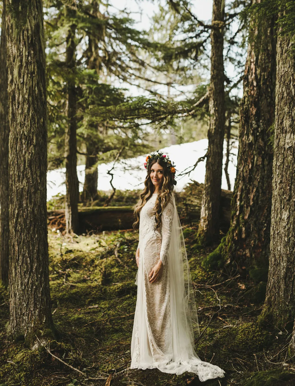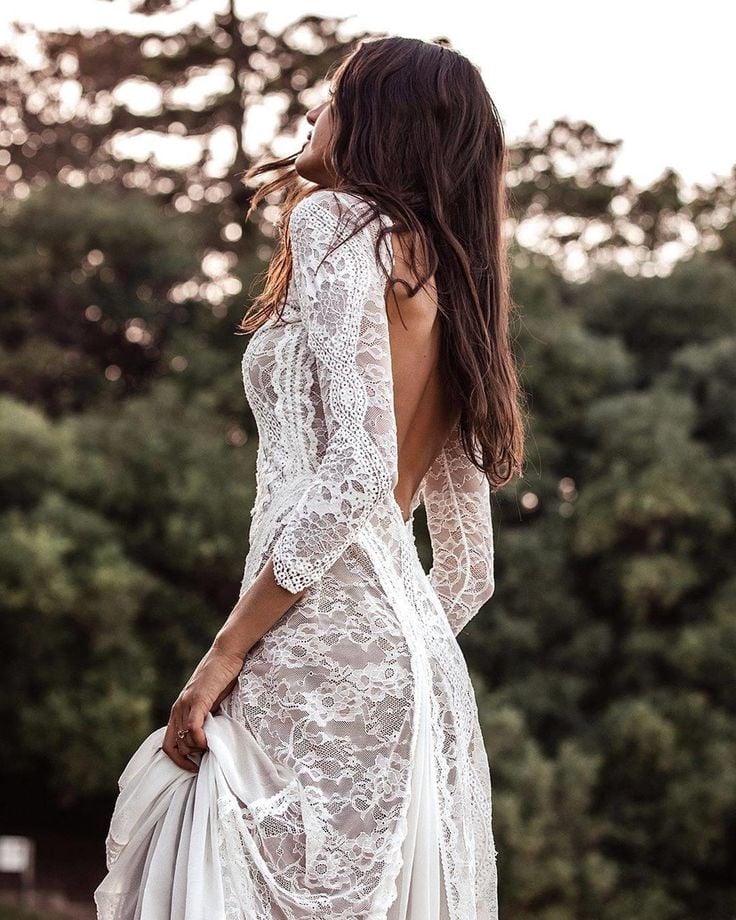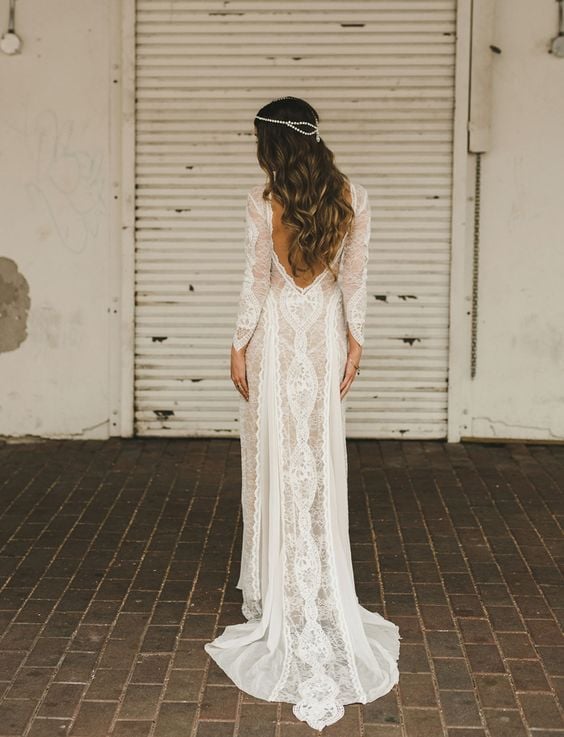 Boho Sexy Sheath V-neck Wedding Dress, Lace Tulle Bridal Dress Wedding Gown