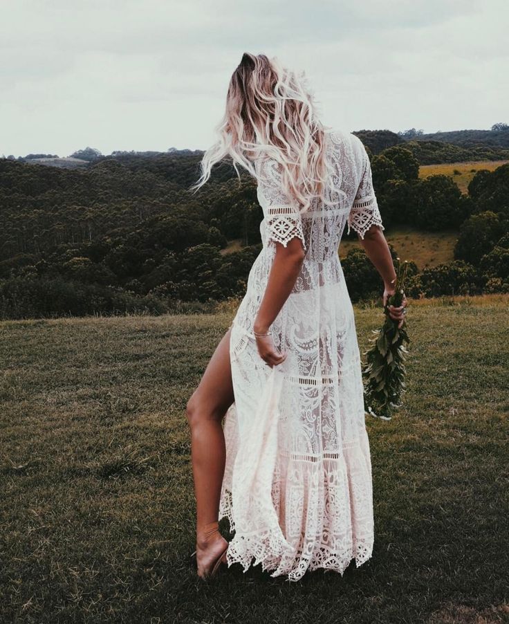 Sexy A-line Wedding Dress, Boho Lace Bridal Dress Wedding Gown