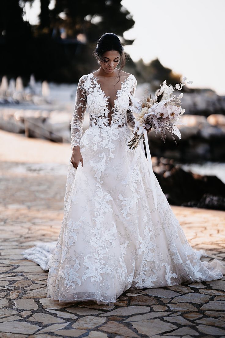 Sexy A-line Wedding Dress, Appliques Tulle Bridal Dress Wedding Gown