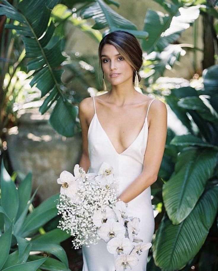 Simple V-neck Sexy Wedding Dress, Sheath Satin Bridal Dress