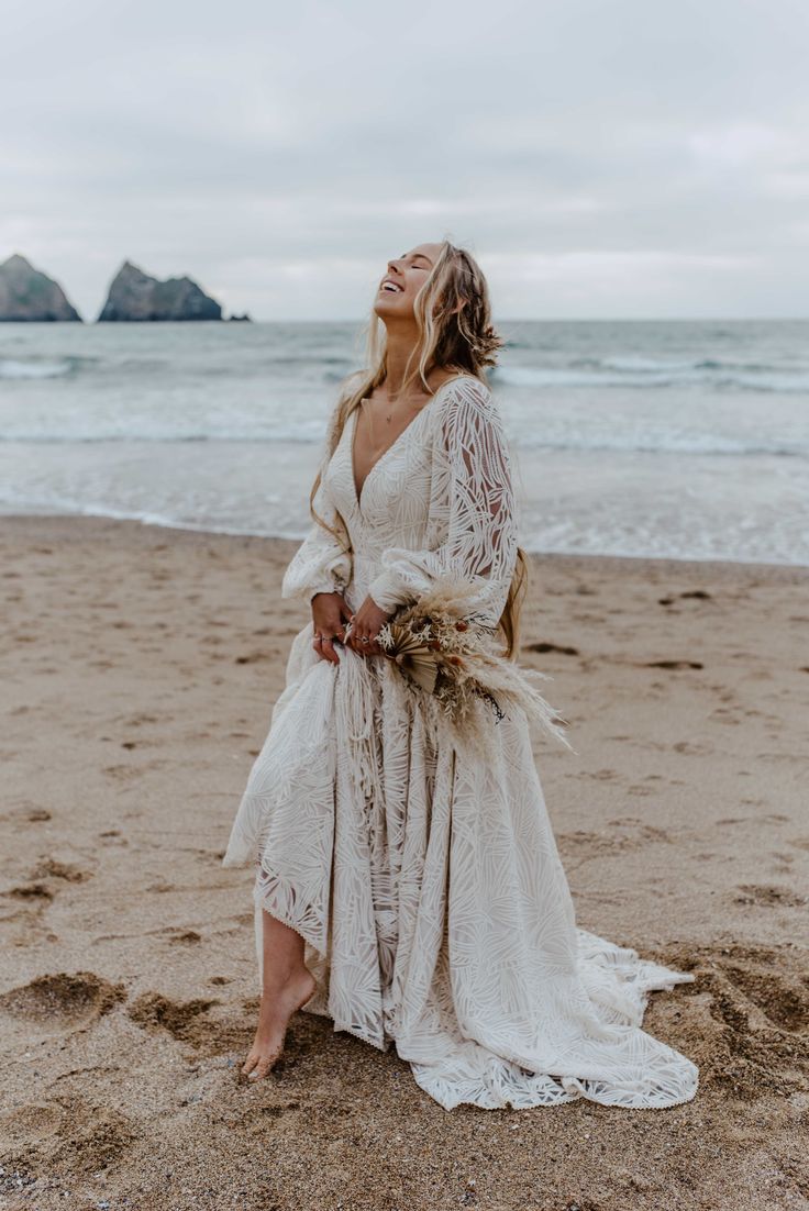 Sexy Boho A-line Wedding Dress, Bohemian Lace Bridal Dress Wedding Gown