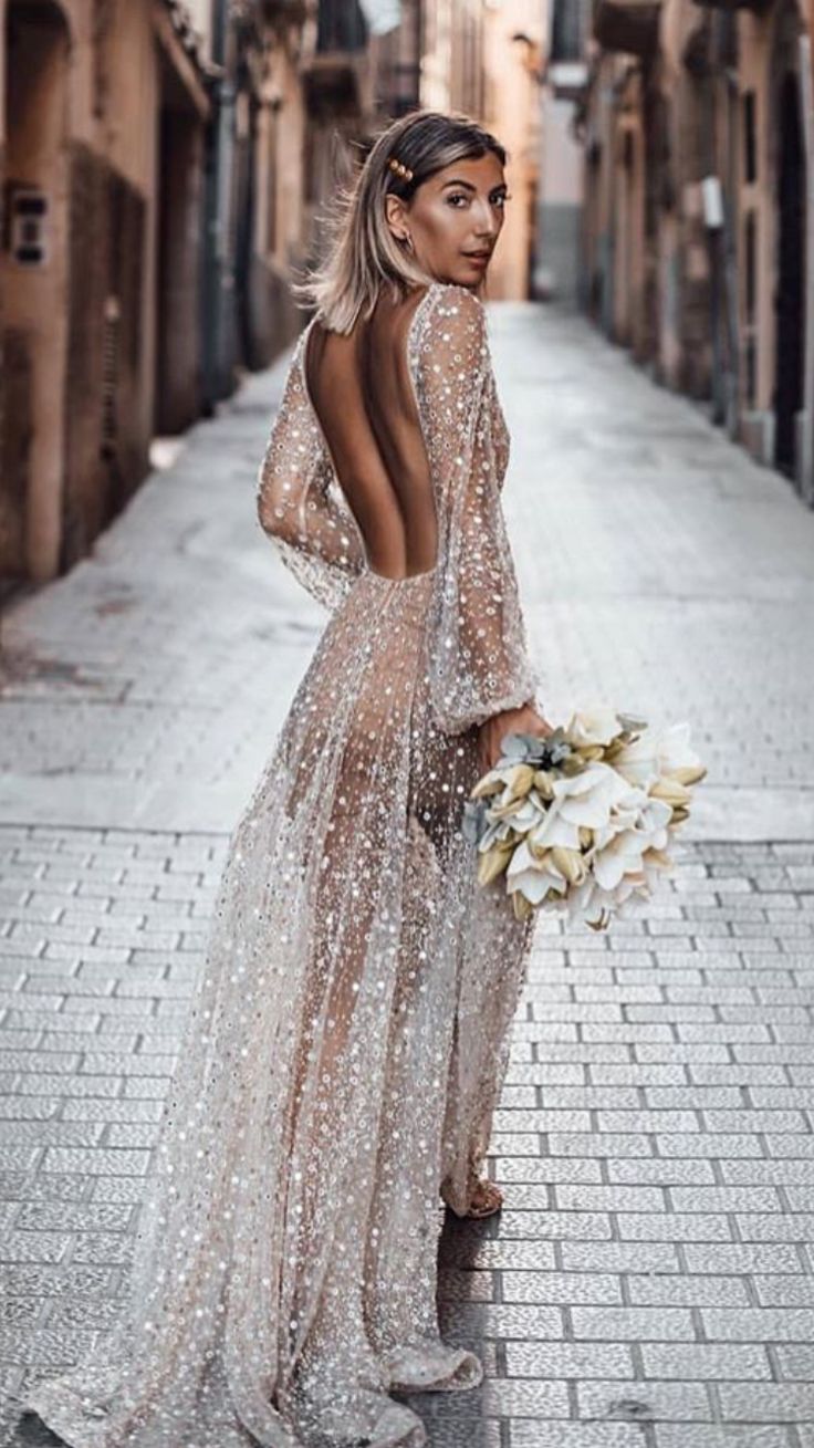 Sexy Luxury Sparkle Wedding Dress, Champagne Beads Bridal Dress Wedding Gown