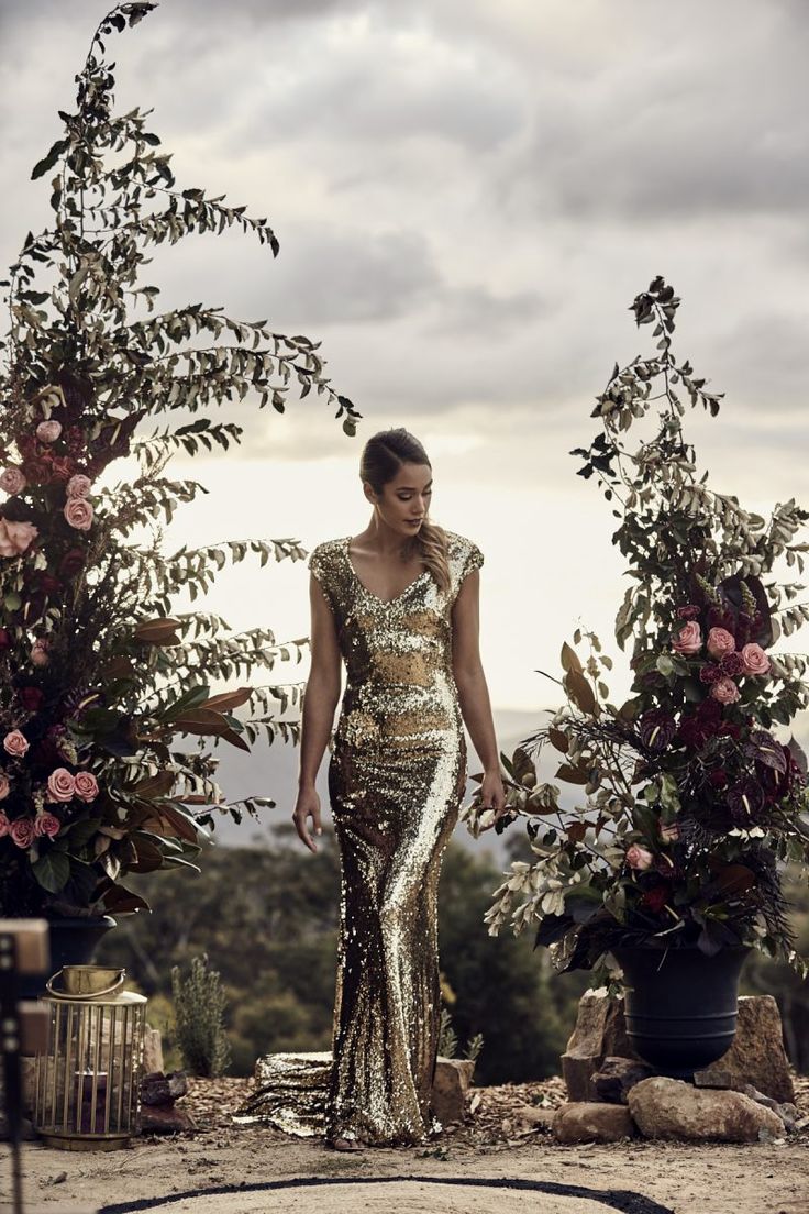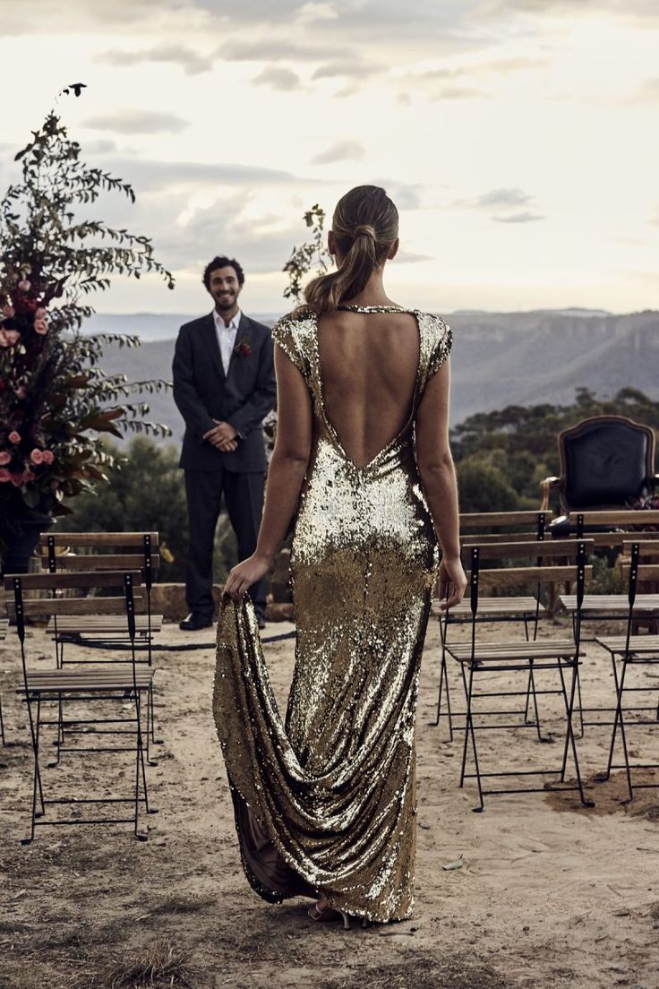 Sexy Golden Wedding Dress, Sequins Lace Bridal Dress Wedding Gown