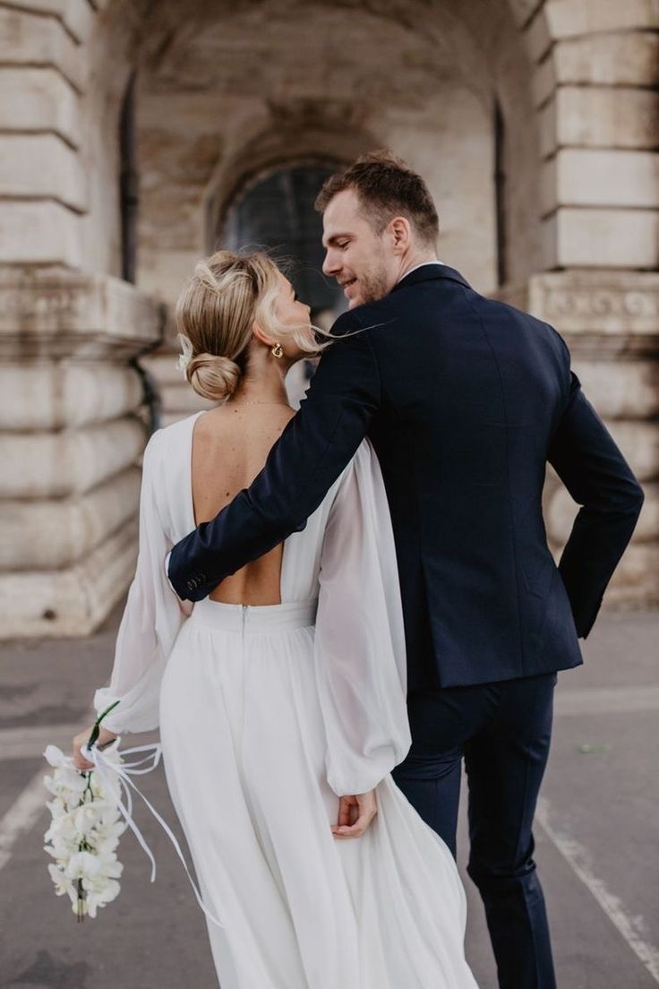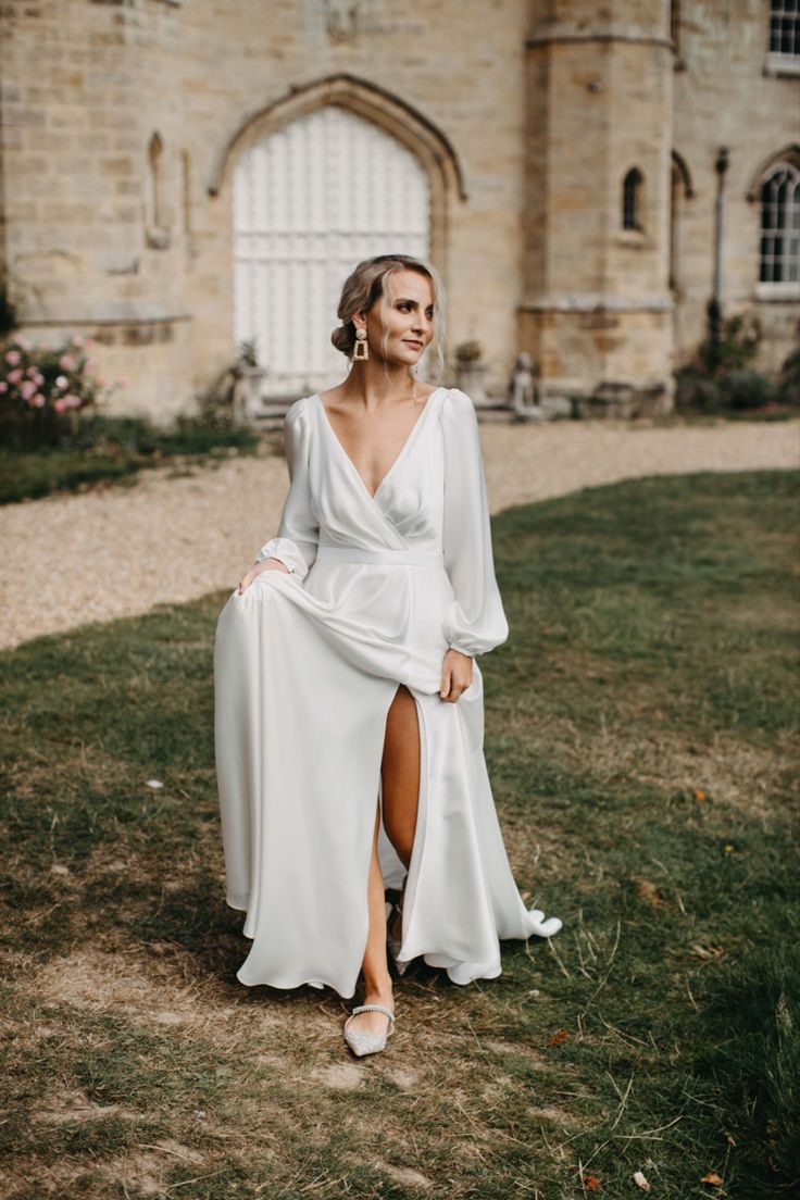 Simple A-line Wedding Dress, Chiffon Long Sleeves Bridal Dress Wedding Gown