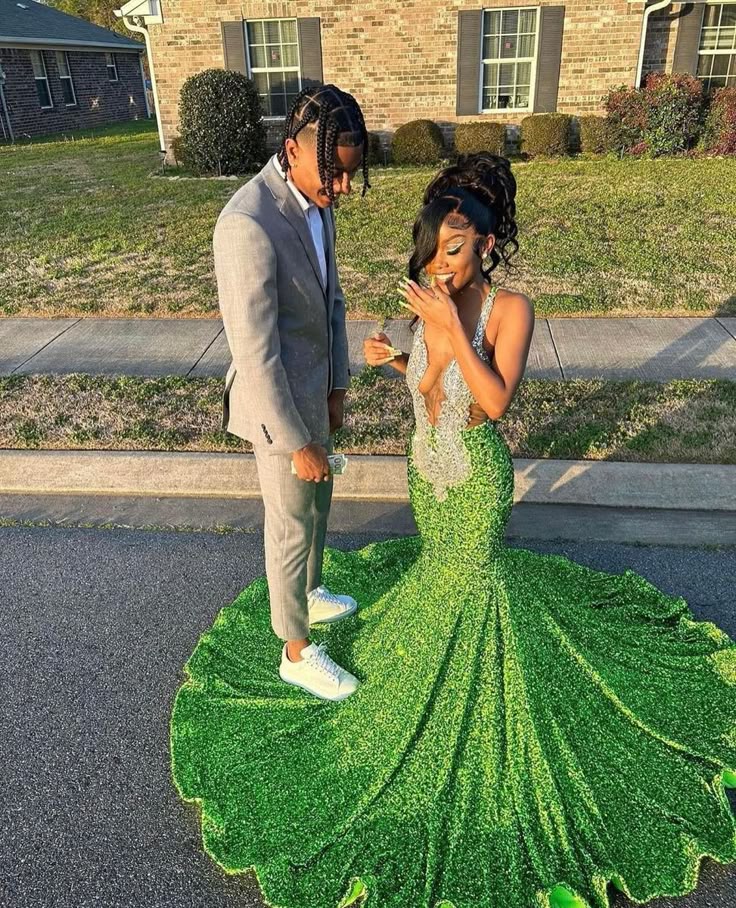 Green Mermaid Sequins Beading Crystals African Girls Prom Dress Formal Evening Dresses