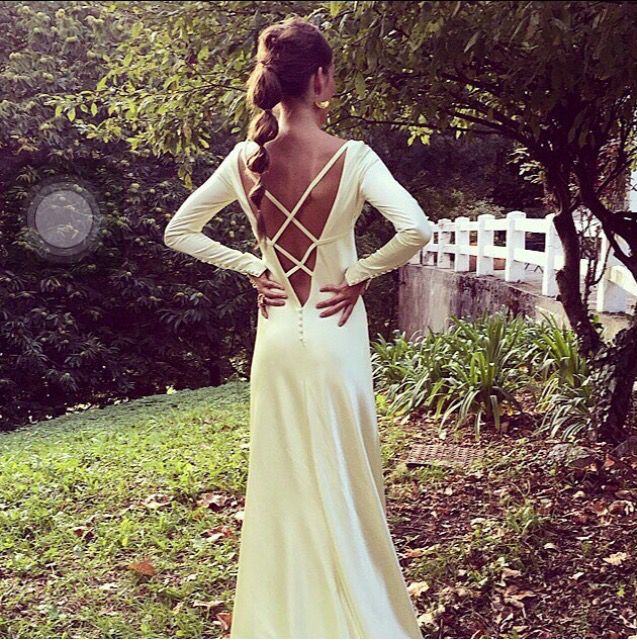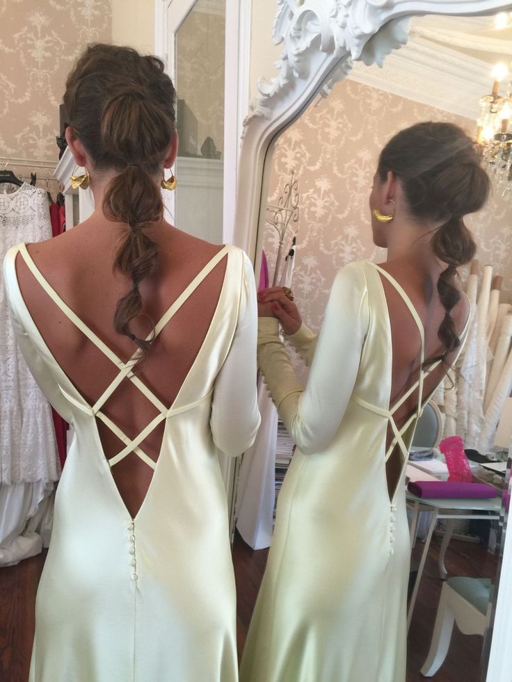 Simple Simple Wedding Dress, Crisscross Back Satin Bridal Dress