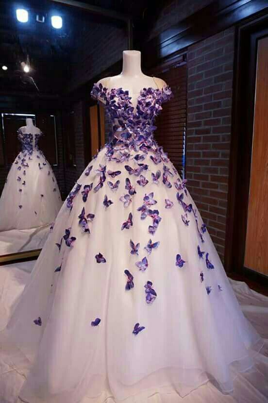 Elegant Ball Gown Handmade Butterflies Puffy Prom Dress Formal Evening Dresses