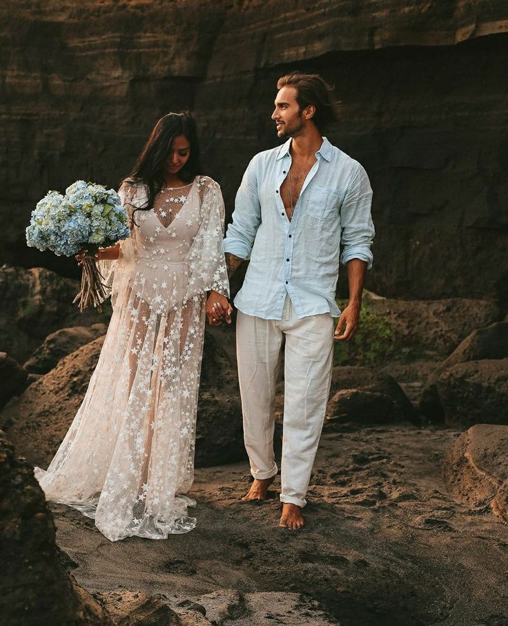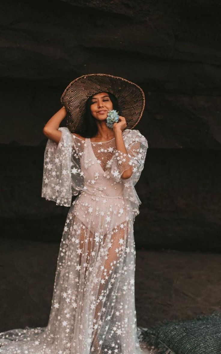 A-line Boho Wedding Dress, Tulle Long Bridal Dress