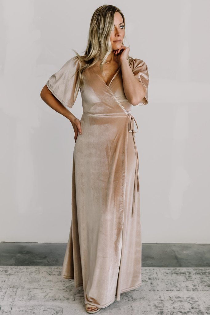 Elegant A-line V-neck Champagne Velvet Mother of Bride Groom Dress