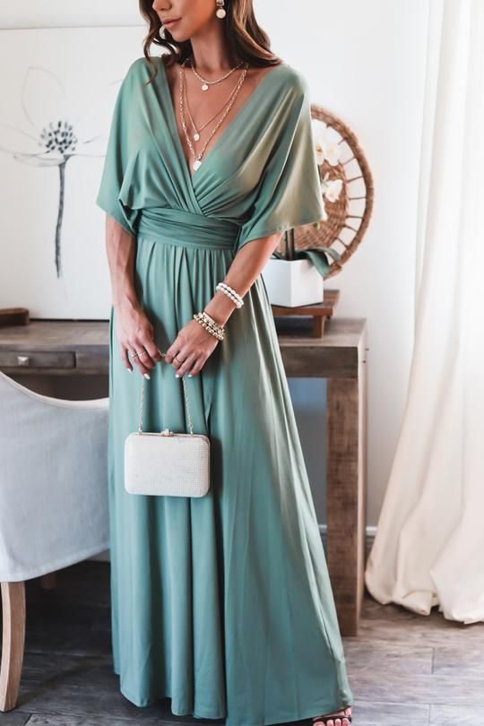 Elegant A-line V-neck Green Chiffon Mother of Bride Groom Dress