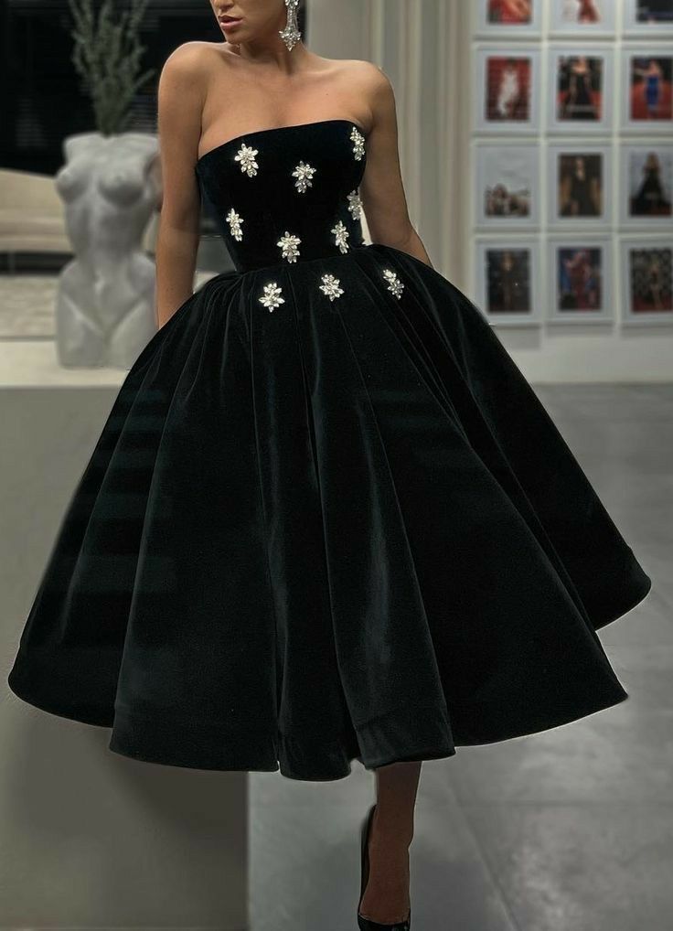 Black and White Tea-length Puffy Prom Dress Formal Evening Dresses