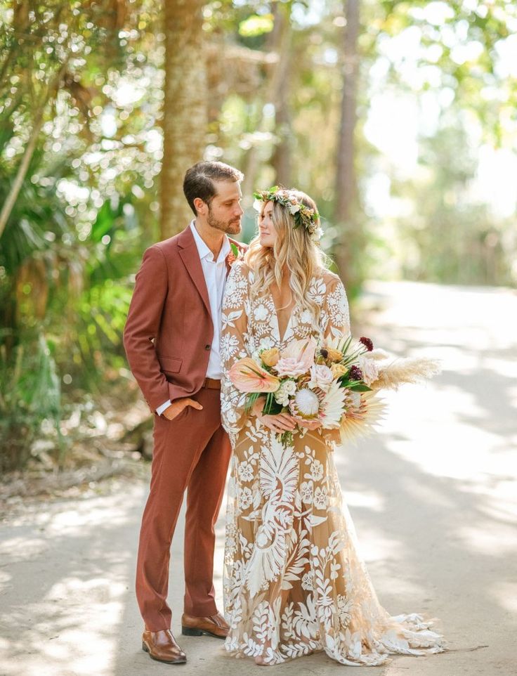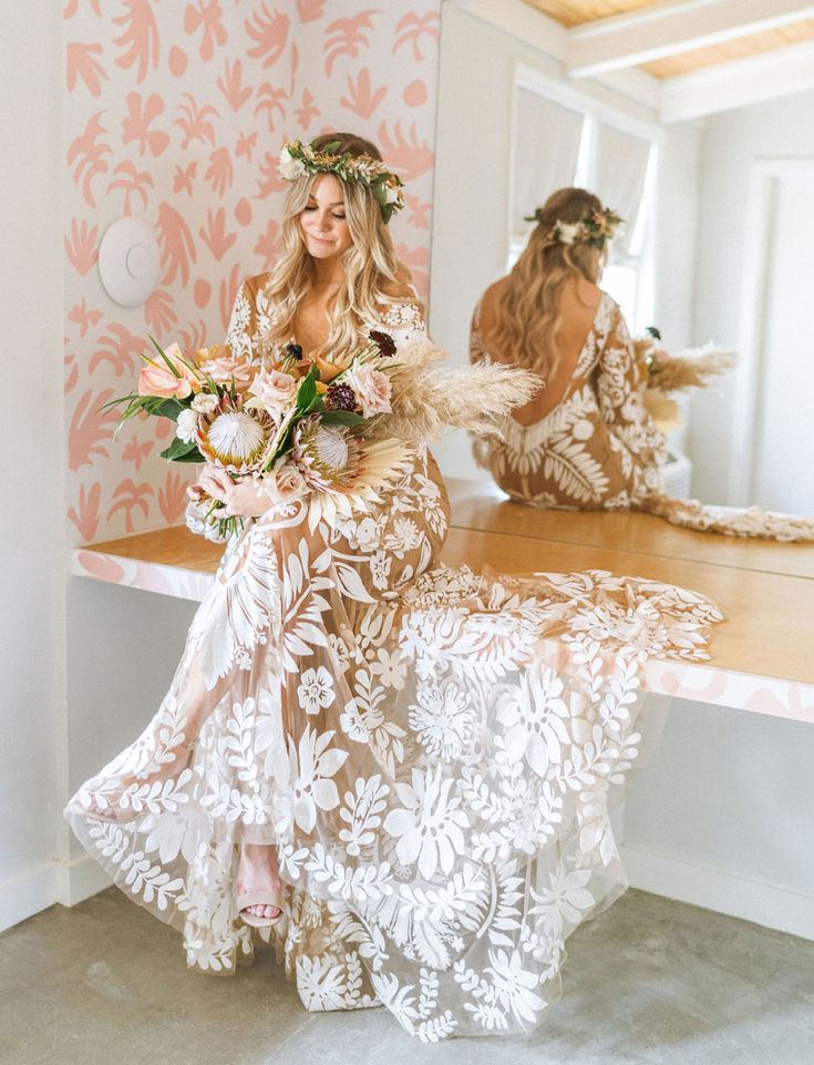 Boho A-line Wedding Dress, Lace Bridal Dress Wedding Gown
