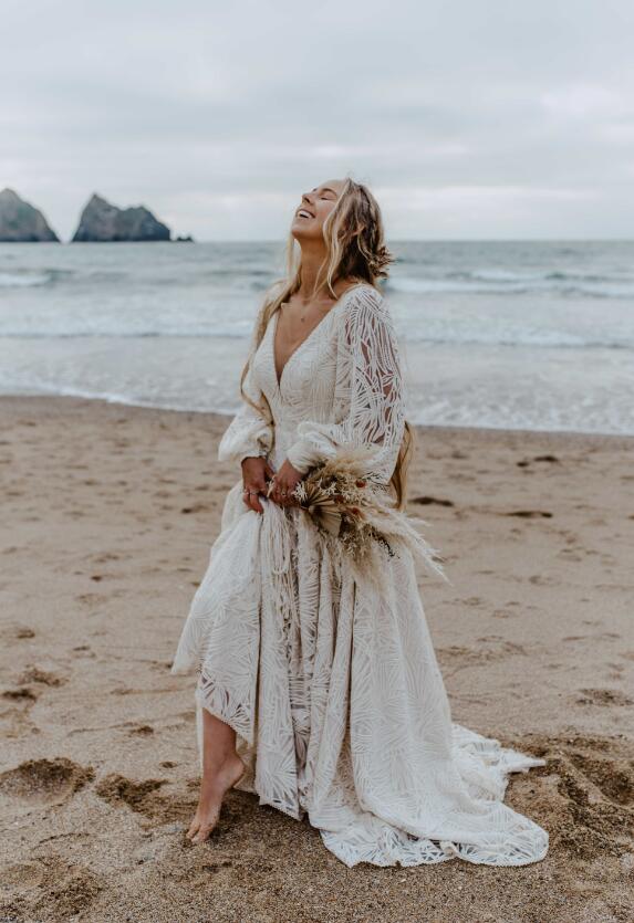 Boho Wedding Dress, Lace Bridal Dress Wedding Gown