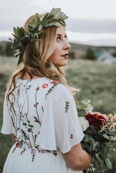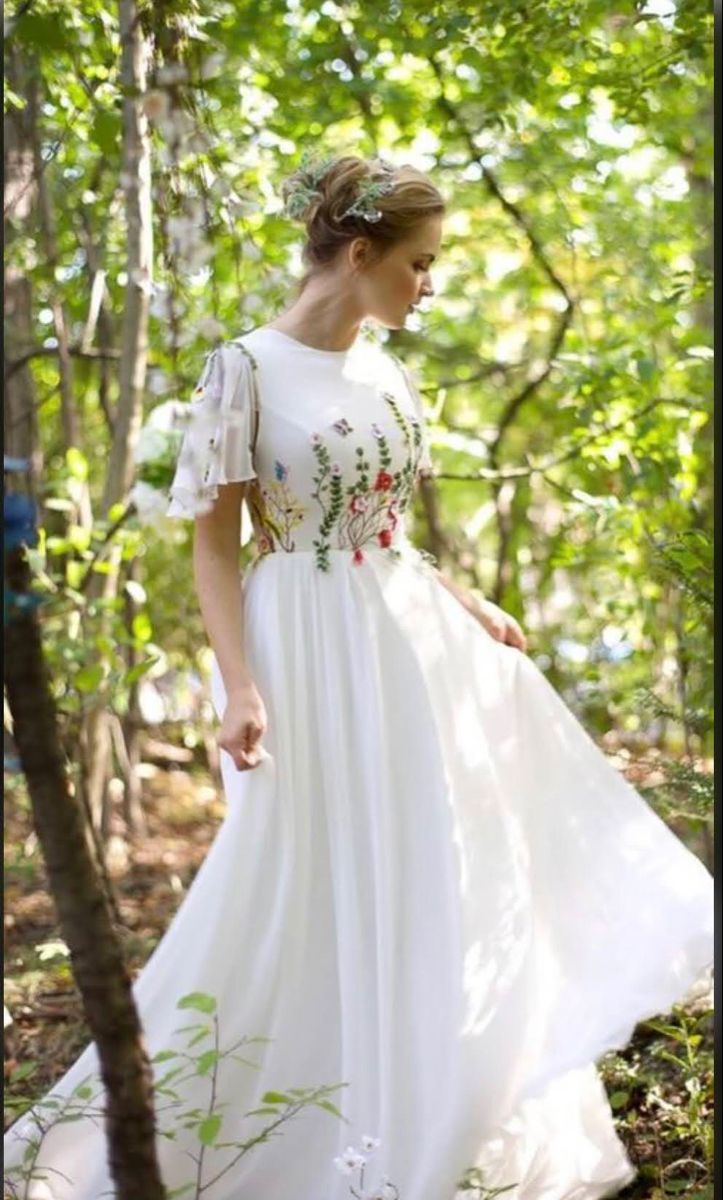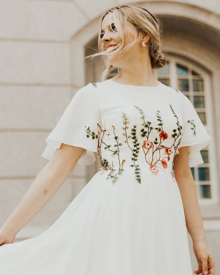 Modest Wedding Dress, Embroidery Chiffon Bridal Dress Wedding Gown