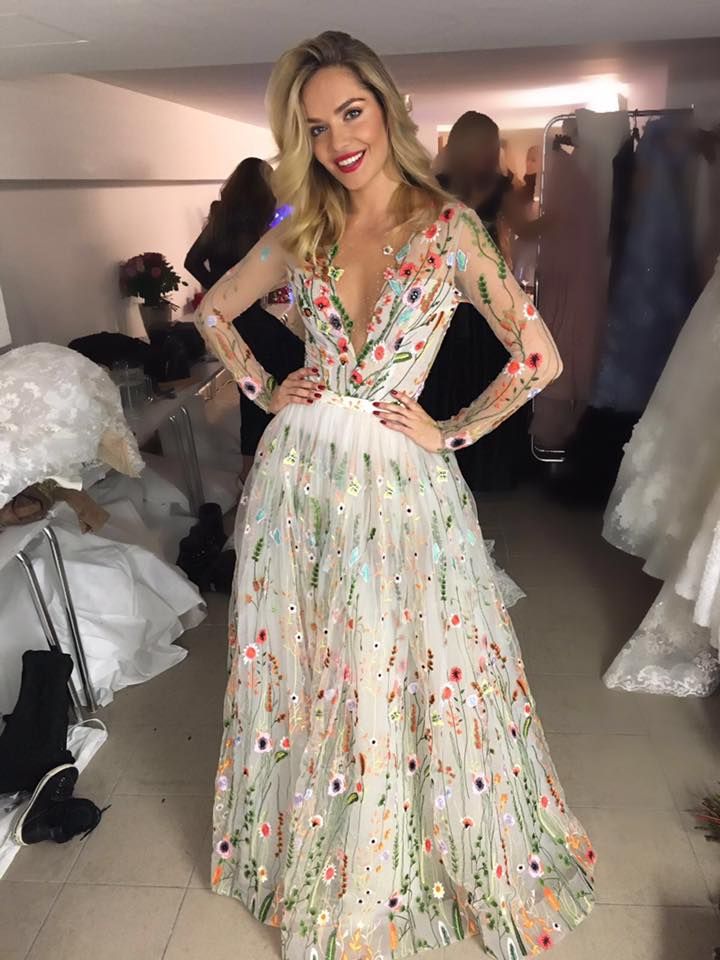 Floral Wedding Dress, V-neck Bridal Dress Wedding Gown