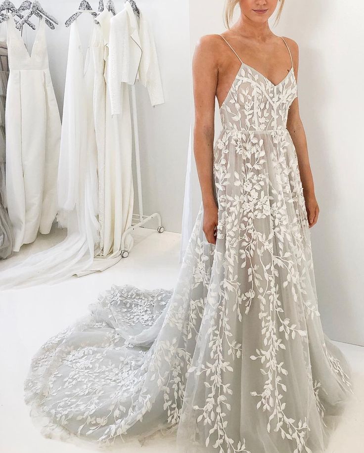 Sheath Lace Wedding Dress, Appliques Tulle Bridal Dress Wedding Gown