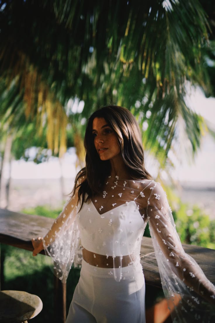 Elegant Chic Wedding Pantssuit, Sheath Side Split Bridal Pantssuit