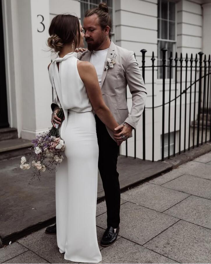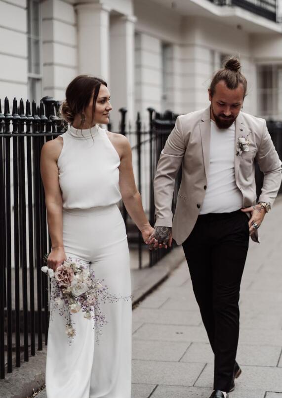 Elegant Chic Wedding Pantsuit, Sheath Side Split Bridal Pantsuit