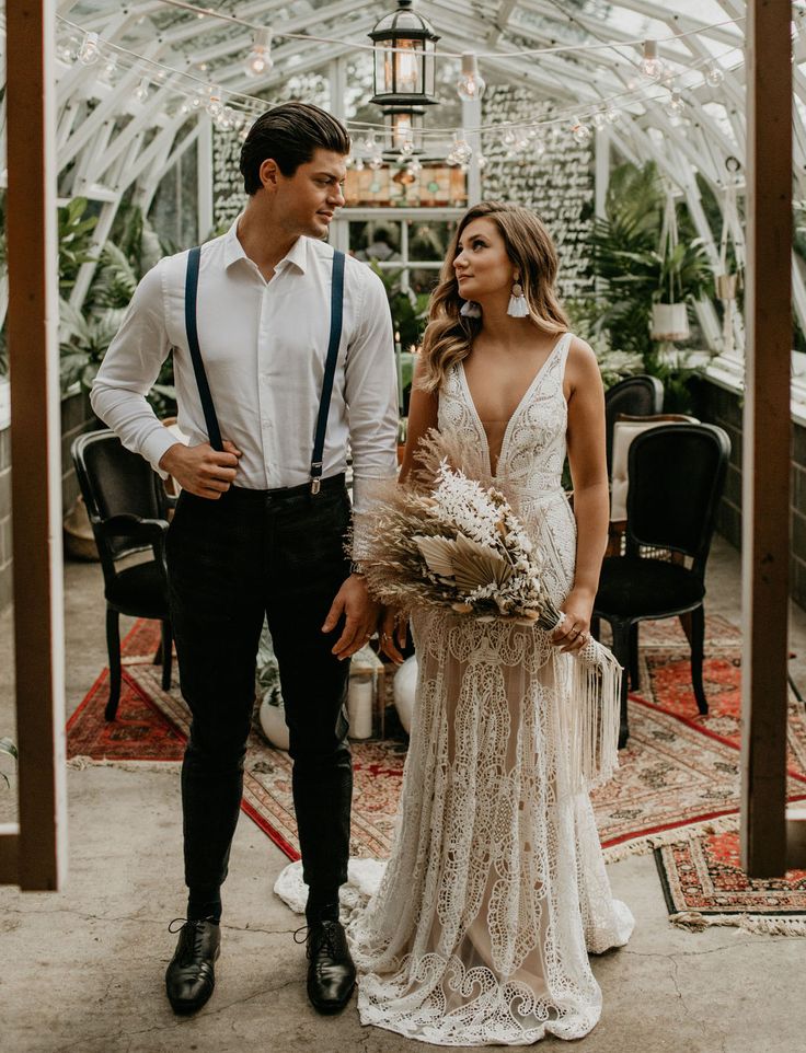 Sexy Deep V-neck Wedding Dress, Lace Backless Bridal Dress Wedding Gown