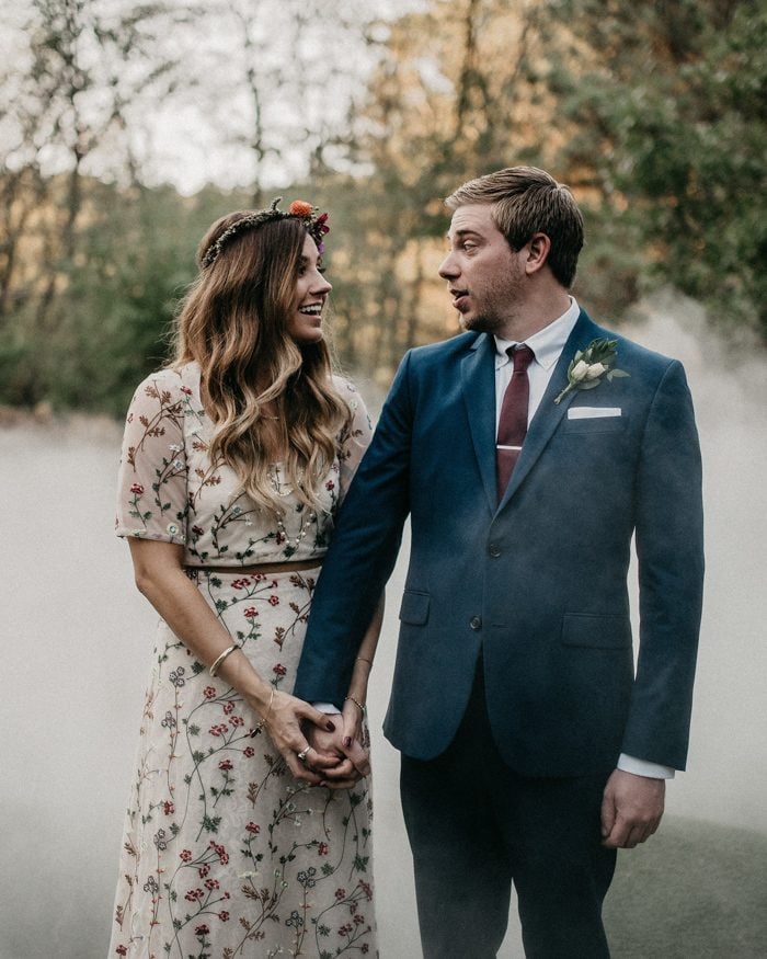 Elegant Floral Wedding Dress, Two Pieces Satin Bridal Dress Wedding Gown