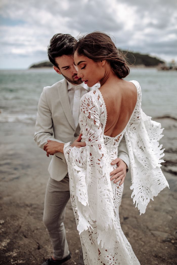Sheath Lace Wedding Dress, Long Sleeves Bridal Dress Wedding Gown