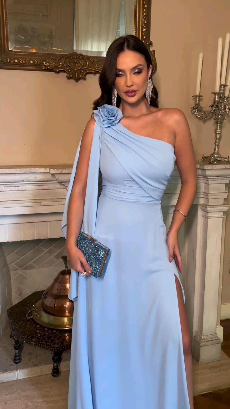 Elegant Blue Sheath One Shoulder Mother of the Bride/Groom Dress Evening Formal Prom Dress