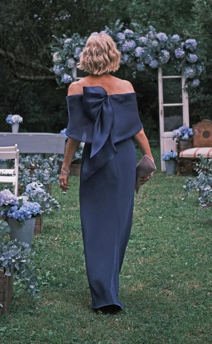Elegant Navy Blue Sheath Off the Shoulder Mother of the Bride/Groom Dress Evening Formal Prom Dress