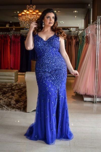 Elegant Plus Size Royal Blue Beading Mother of the Bride/Groom Dress Evening Formal Prom Dress