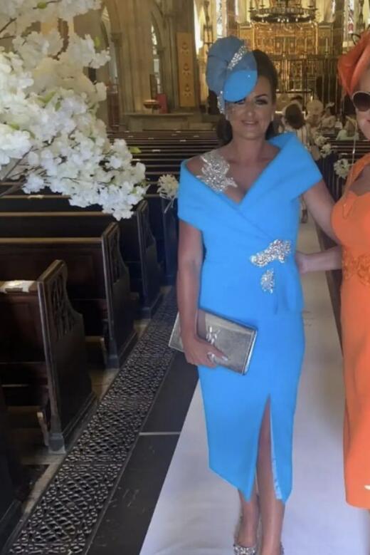 Elegant Blue Sheath Tea-length Mother of the Bride/Groom Dress Evening Formal Prom Dress