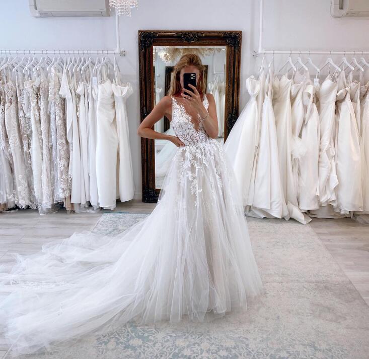 Sexy A-line Appliques Tulle Wedding Dress Bridal Dress Bridal Gown