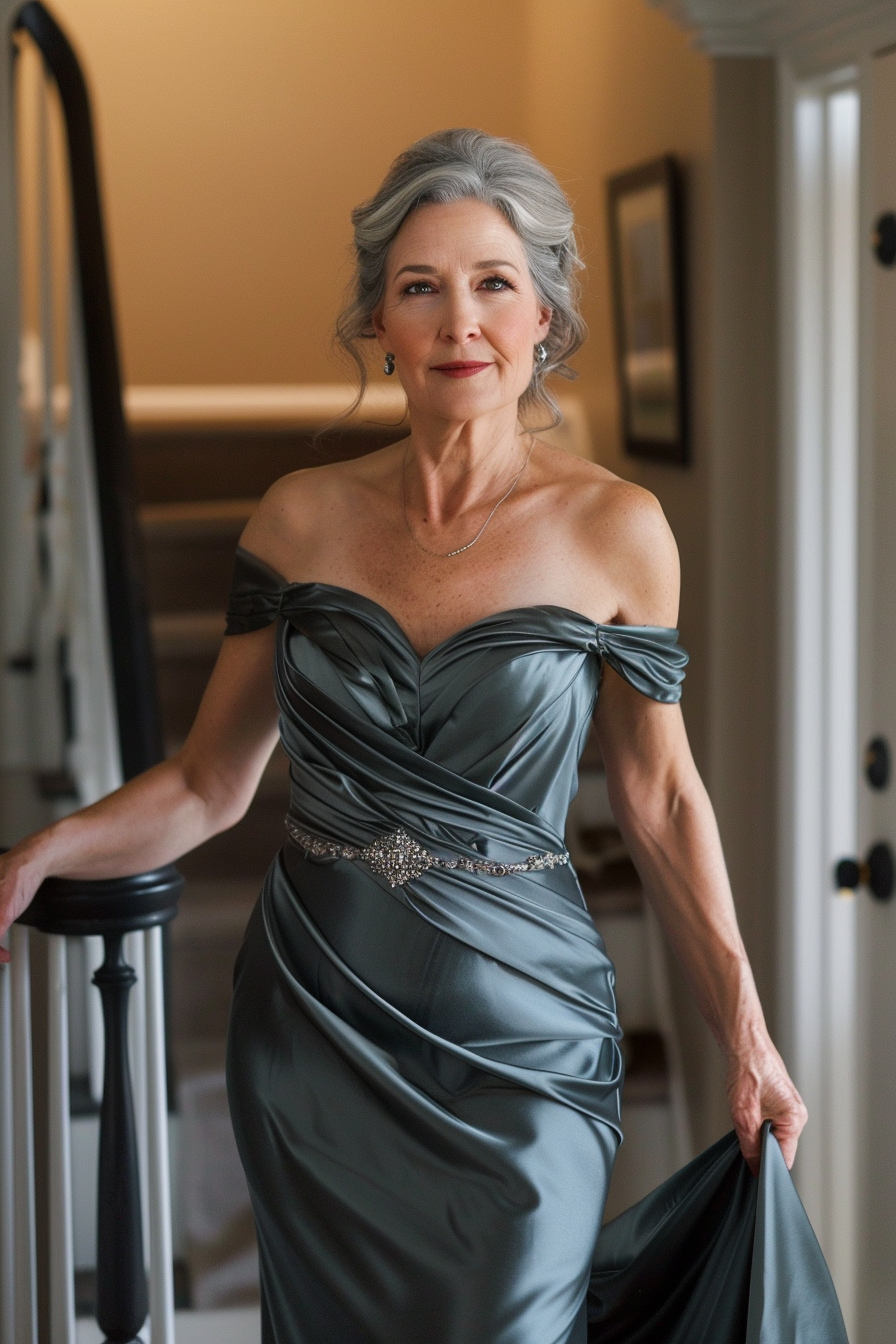 Elegant Sheath Blue Off the Shoulder Mother of the Bride/Groom Dress Evening Formal Prom Dress