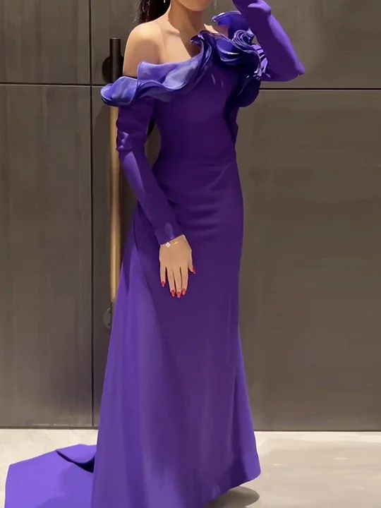 Elegant Purple Sheath Mother of the Bride/Groom Dress Evening Formal Prom Dress