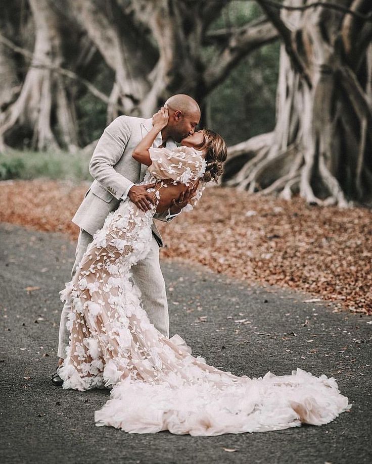 Luxury 3D Flowers Wedding Dress, Appliques Tulle Bridal Dress Bridal Gown