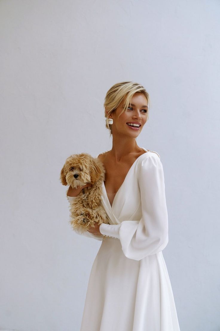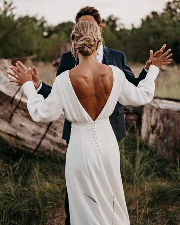 Sexy Deep V-neck Long Sleeves Chiffon Wedding Dress Bridal Dress Wedding Gown