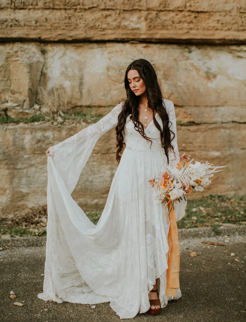 Boho Lace Victorian Hippie Boho Wedding Dress, Bohemian Wedding Gown Bridal Dress