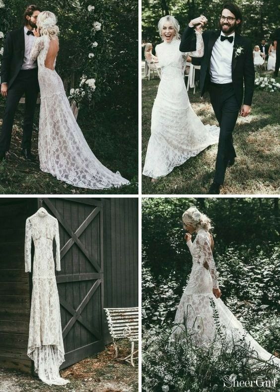 Lace Backless Wedding Dress, Boho Lace Wedding Gown Bridal Dress