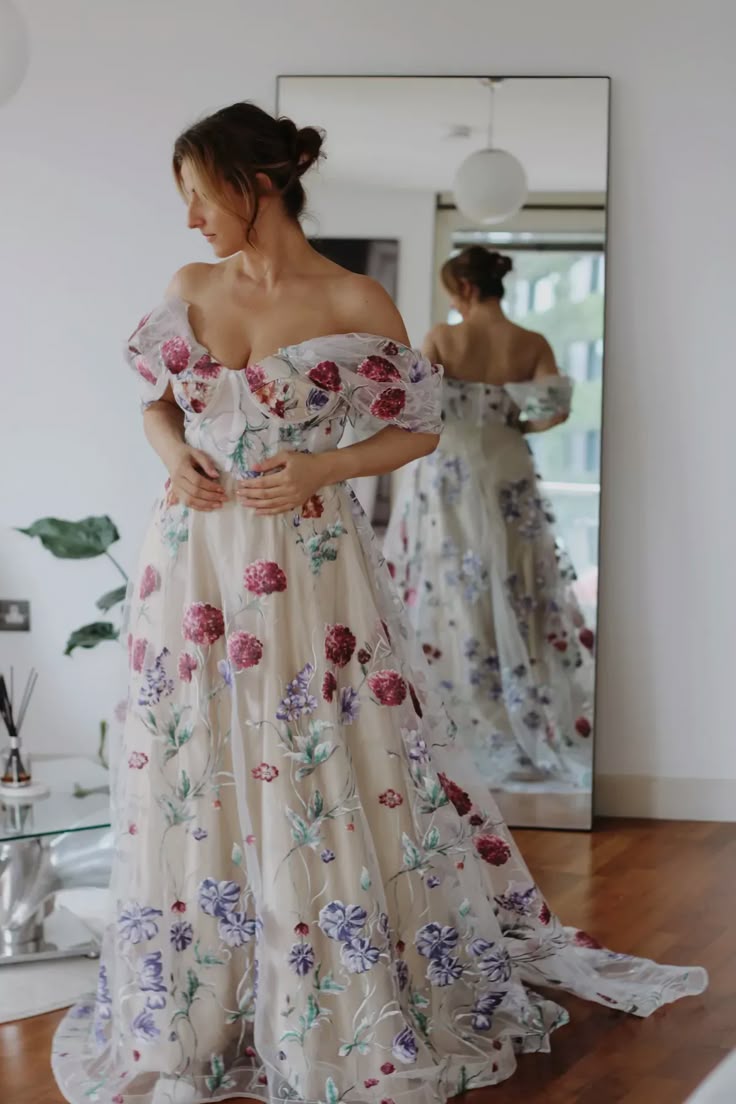 Cream Colored Wedding Dress, Floral Wedding Gown Bridal Dress