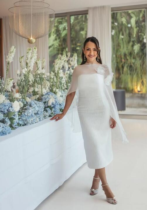 Simple Sheath Wedding Gown Wedding Dress, Tea-length Wedding Gown Bridal Dress