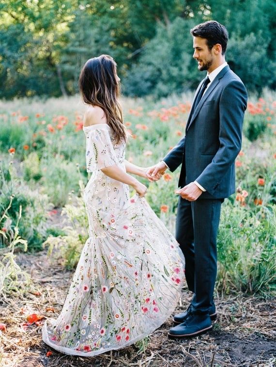 A-line Floral Wedding Gown Wedding Dress, Embroidery Tulle Wedding Gown Bridal Dress