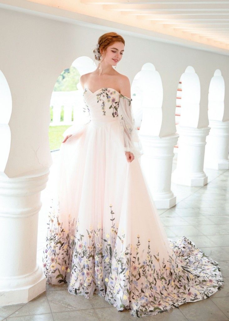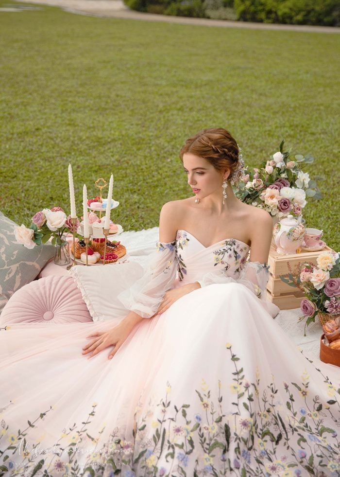Floral Wedding Gown Wedding Dress, Tulle Wedding Gown Bridal Dress