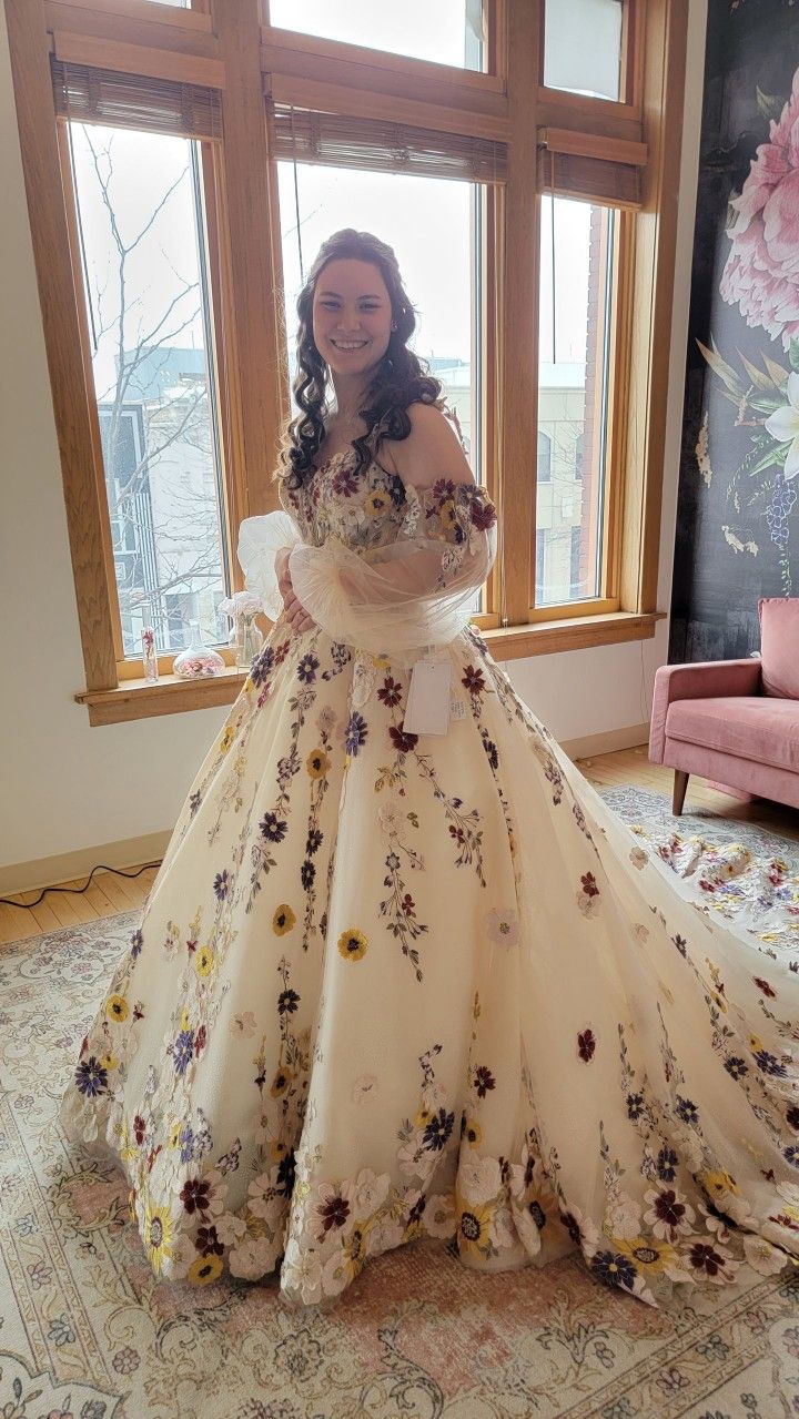 Floral A-line Wedding Gown Wedding Dress, Tulle Wedding Gown Bridal Dress