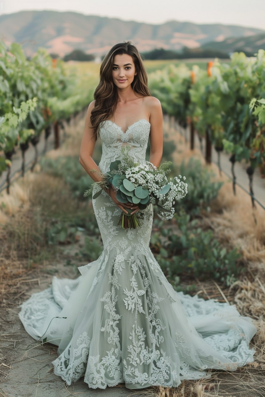 Sage Green Mermaid Appliques Wedding Gown Wedding Dress, Tulle Wedding Gown Bridal Dress