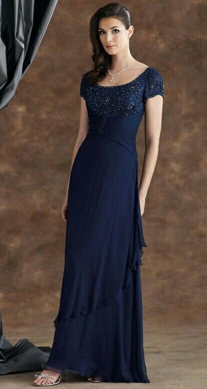 Elegant Navy Blue Sheath Beaded Mother of the Bride/Groom Dress Evening Formal Prom Dress