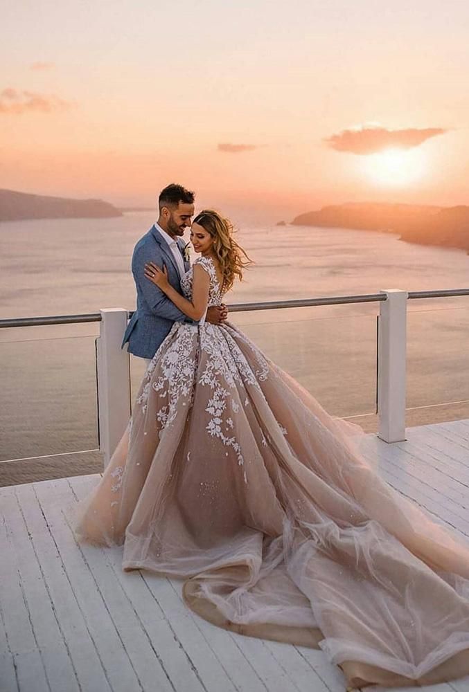 Champagne Wedding Gown Wedding Dress, Appliques Tulle Wedding Gown Bridal Dress