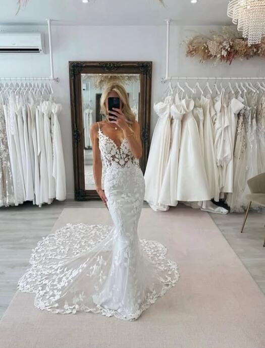 Sexy Lace Wedding Gown Wedding Dress, Appliques Lace Tulle Wedding Gown Bridal Dress