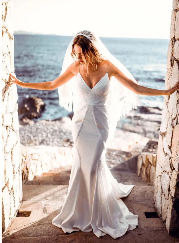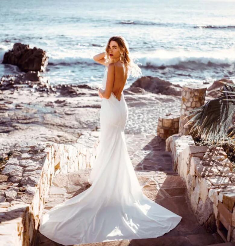 Beach Mermaid Backless Bridal Gown Wedding Dress