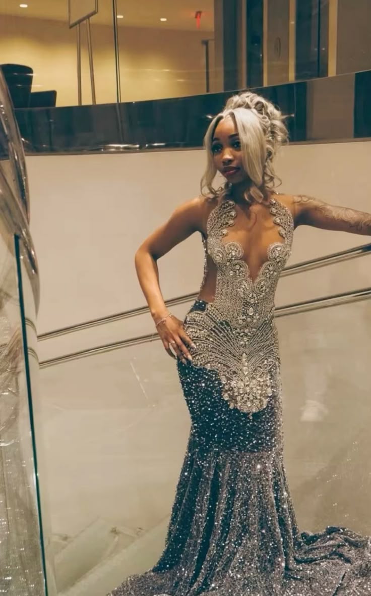 African Girls Sequins Gold Appliques Beading Crystals Prom Dress Formal Evening Dresses