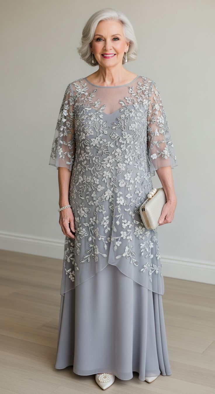 Plus Size Grey Chiffon Appliques Mother Of Bride /Groom Dresses Evening Formal Gown