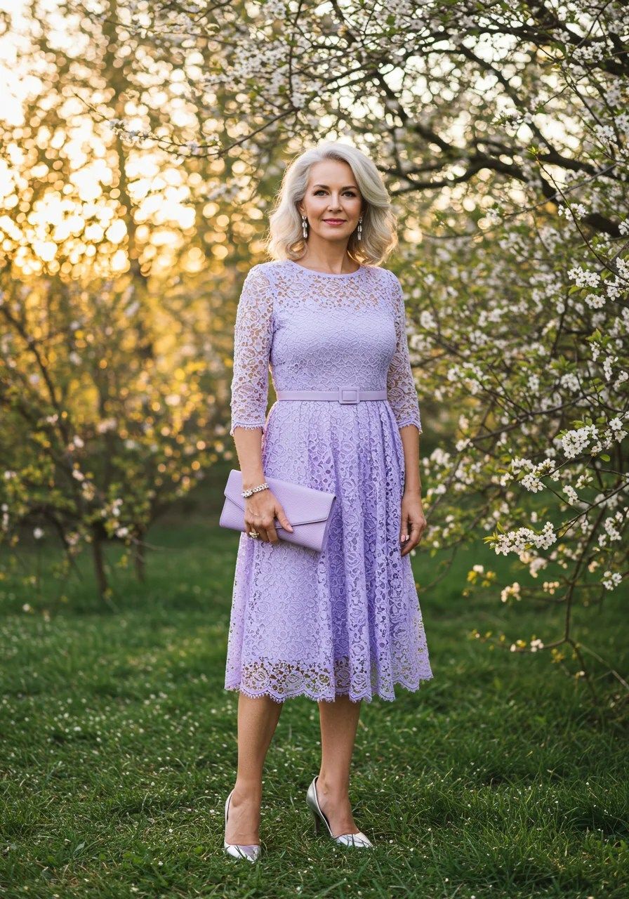 Purple A Line Lace Tea-length Mother of Bride/Groom Dress Evening Formal Gowns